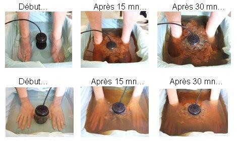 L’eau change de couleur et d’aspect en fonction de l’oxydation des particules éliminés par le corps.